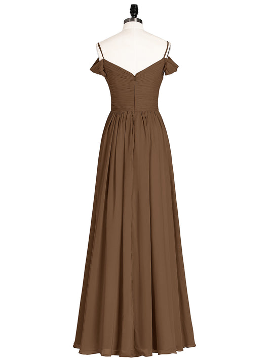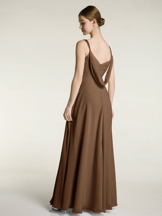 Babaroni PrudencePrudence Un Hombro Gasa Largo Cortes De Dama De Honor Marrón