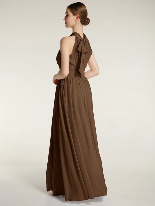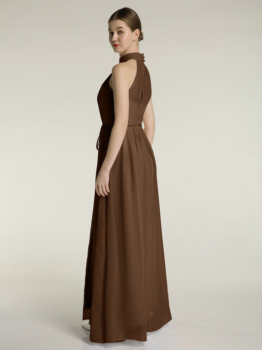Babaroni KimiVestidos de chiffon de cuello alto con abertura y lazo de cinturón Marrón