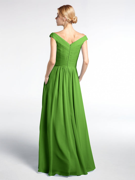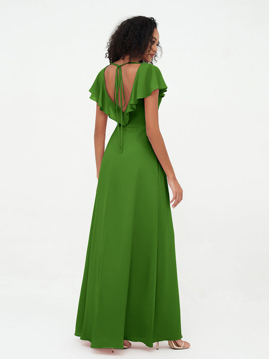 Babaroni PagVestidos estilo A-line de chiffon con escote en V y abertura Musgo