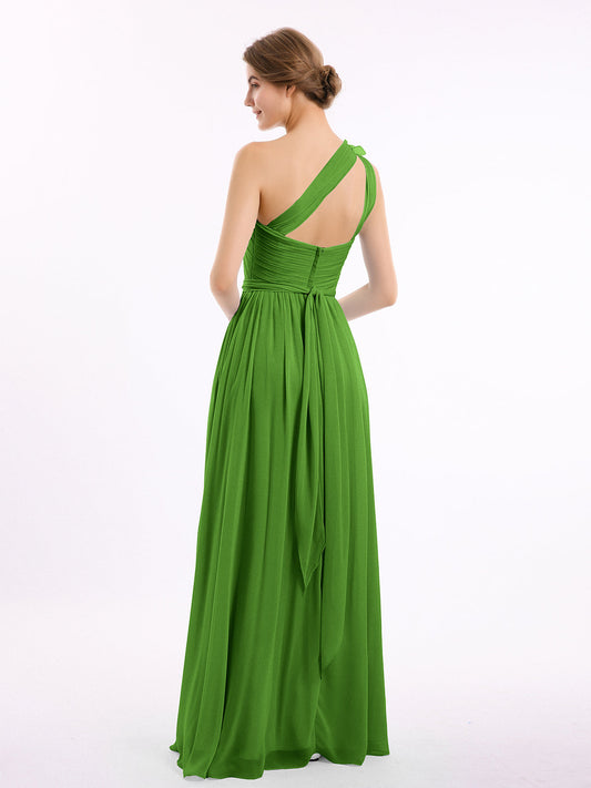 Babaroni LynnVestidos de chiffon con un hombro de flor y bolsillo Musgo