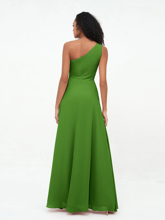 Babaroni XantheVestidos máximos de chiffon de un solo hombro con abertura Musgo
