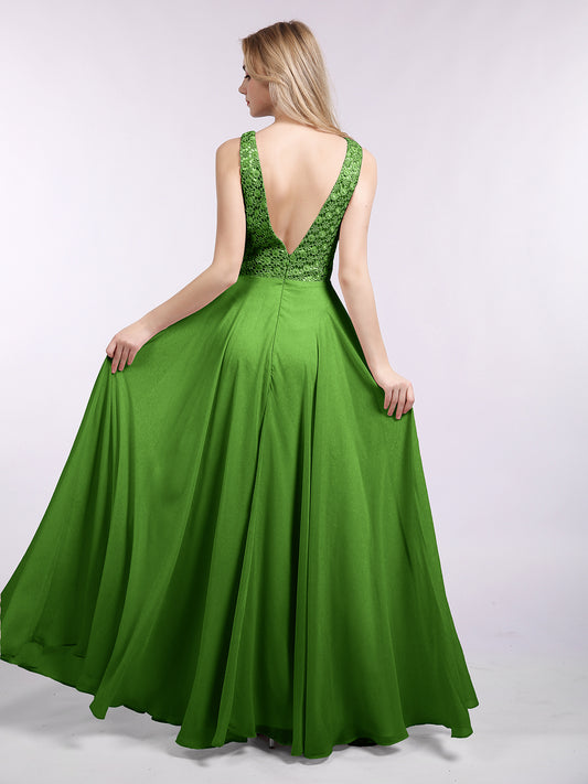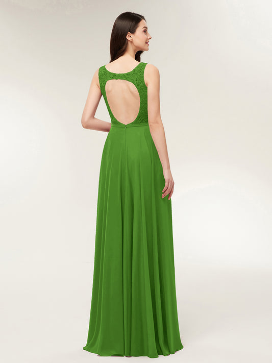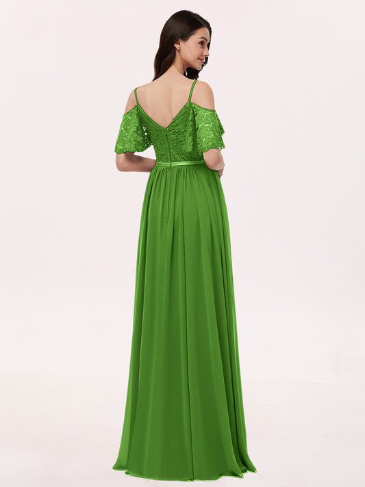 Babaroni AdalynAdalyn Escote En V Gasa Y Encaje Maxi Corte De Dama De Honor Musgo