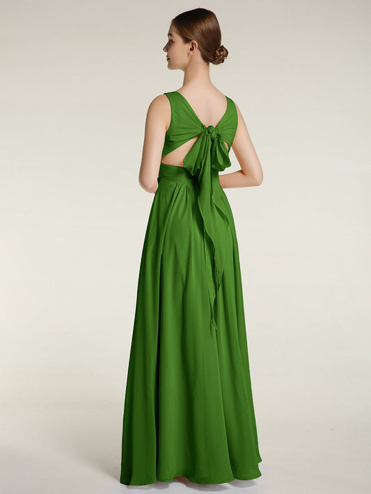Babaroni SandraVestidos sencillos de dama de honor de chiffon con espalda baja Musgo