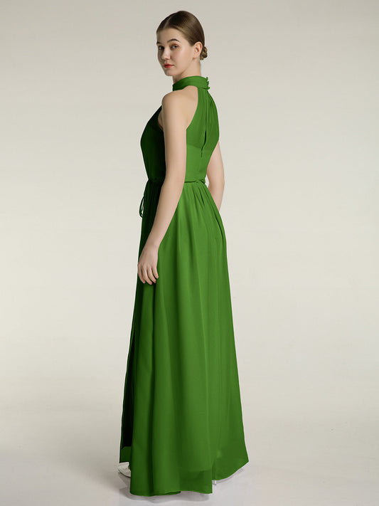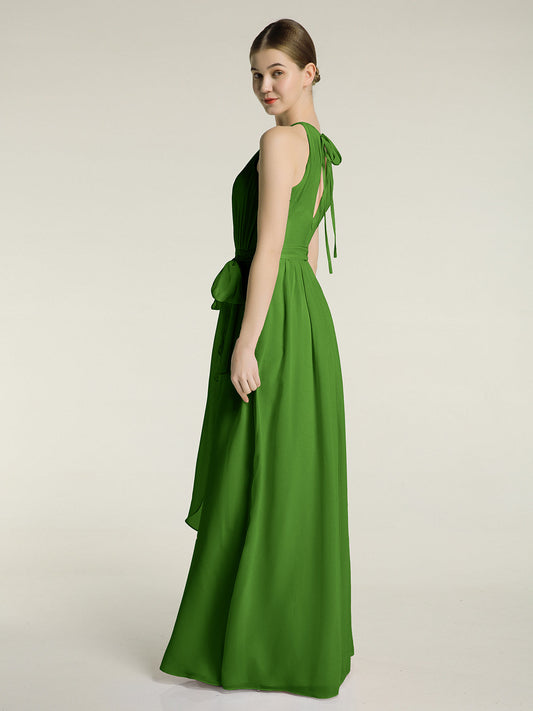Babaroni JaneVestidos largos de chiffon estilo halter con lazo Musgo