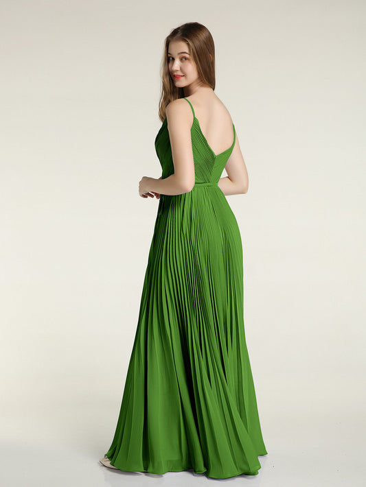 Babaroni MaudSencillos vestidos largos de chiffon con tirantes finos y abertura Musgo
