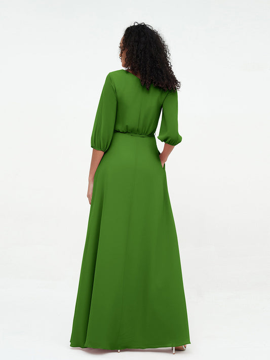 Babaroni UnaVestidos máximos de chiffon con escote en V profundo y mangas 1/2 Musgo