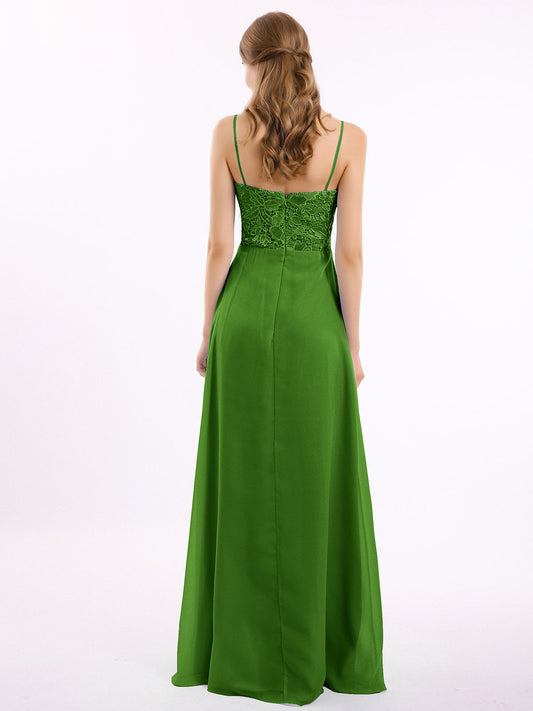 Babaroni CherryVestidos largos de encaje y chiffon con tirantes finos Musgo