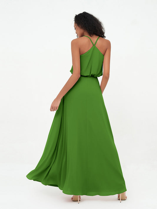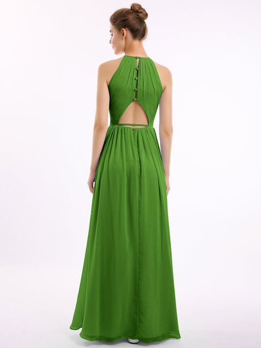 Babaroni CynthiaVestidos largos de chiffon estilo halter con espalda descubierta Musgo