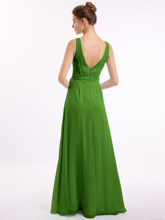 Babaroni GailVestidos largos de chiffon con escote en V hasta el suelo Musgo