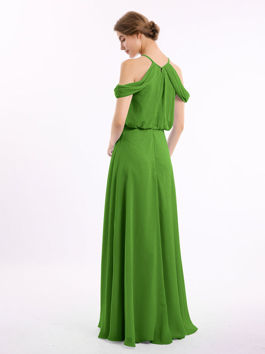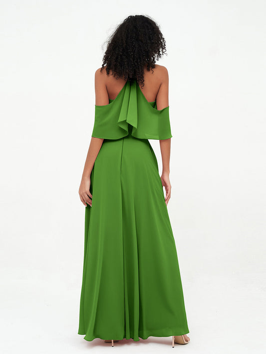 Babaroni IvyVestidos máximos de chiffon estilo halter con hombros descubiertos Musgo