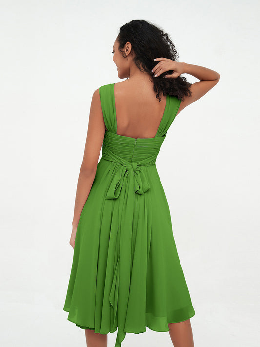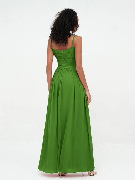 Babaroni LeeVestidos de dama de honor de chiffon con tirantes spaghetti y escote en V Musgo