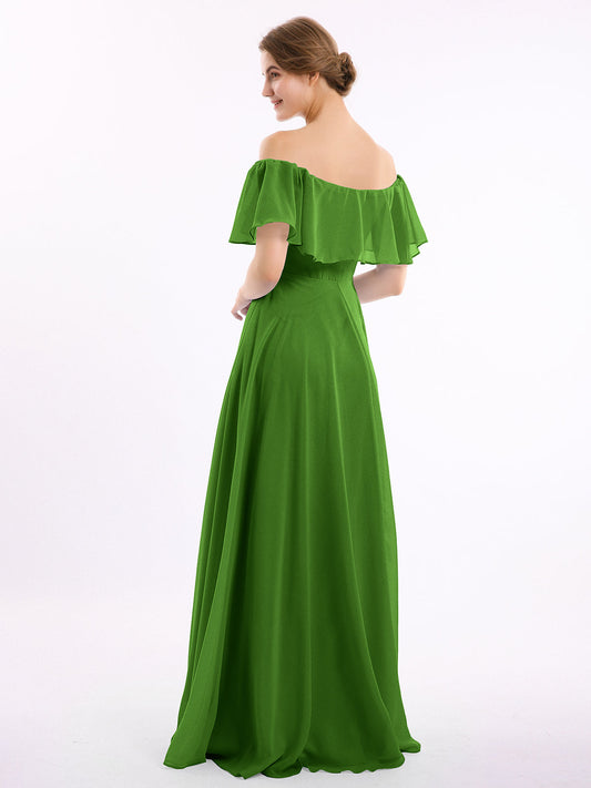 Babaroni LaurenVestidos largos de chiffon estilo princesa con abertura Musgo
