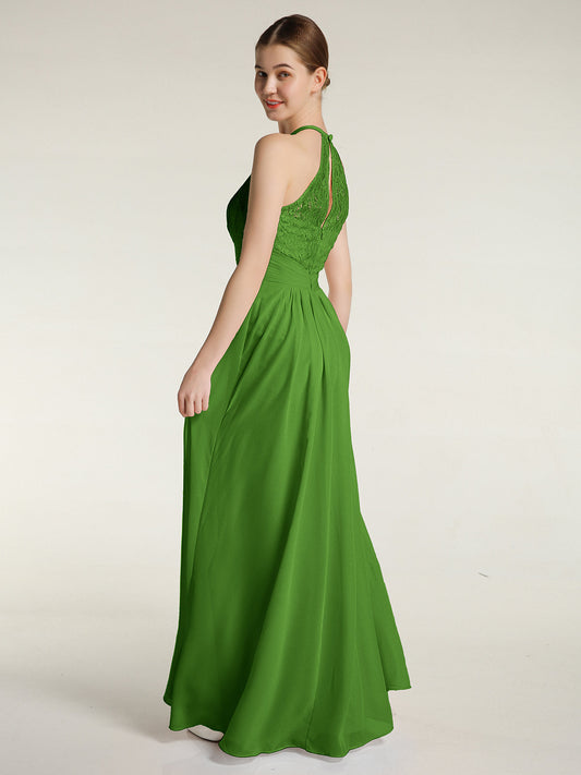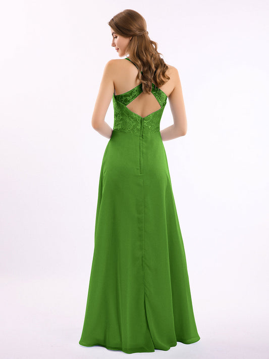 Babaroni AmandaVestidos largos de chiffon y encaje estilo halter Musgo