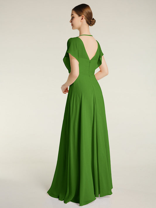 Babaroni PagVestidos estilo A-line de chiffon con escote en V y abertura Musgo
