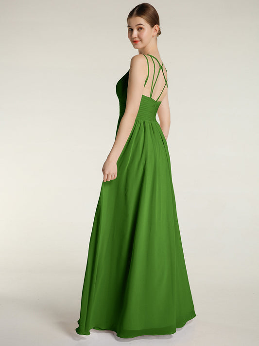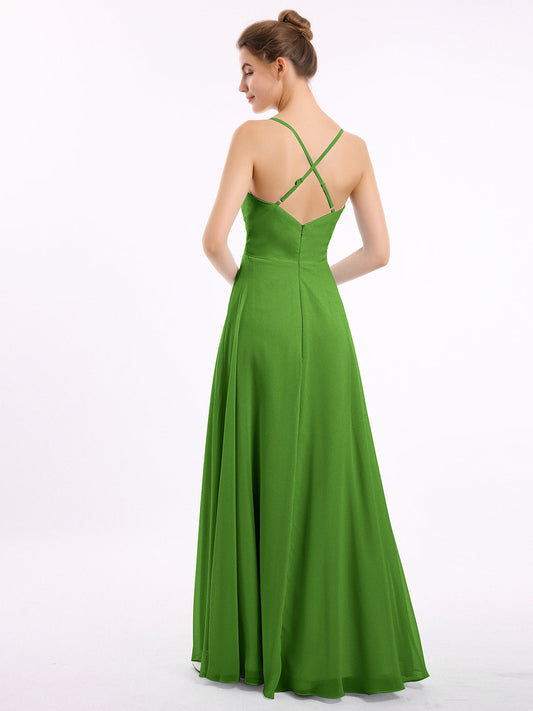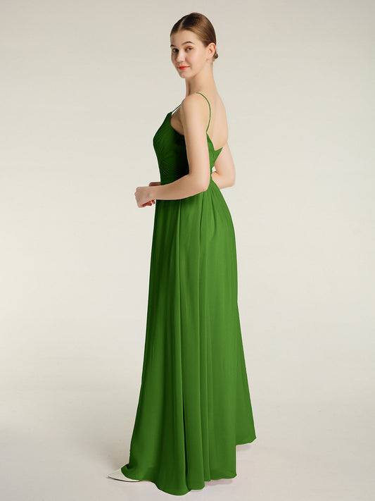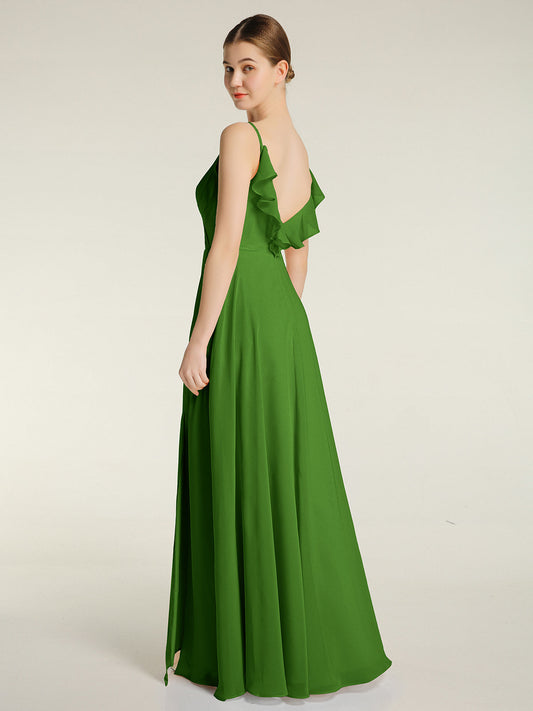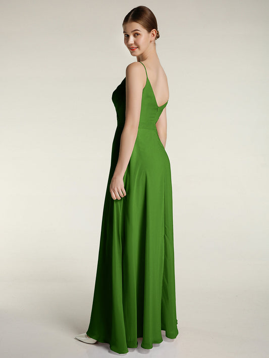 Babaroni TammyVestidos de chiffon con tirantes finos y escote en V Musgo