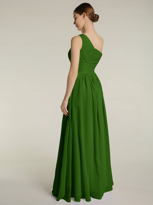Babaroni MildredVestidos largos de chiffon de un hombro con bolsillos Musgo