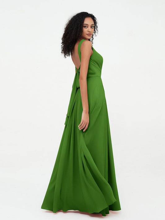 Babaroni VitaVestido de dama de honor de chiffon con escote en V y espalda descubierta Musgo