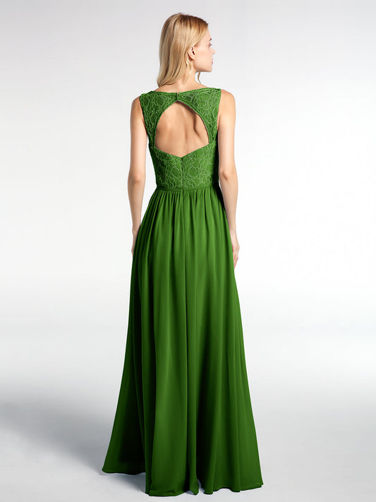 Babaroni LaraineVestido maxi con cuerpo de encaje y falda de chiffon con escote en V Musgo