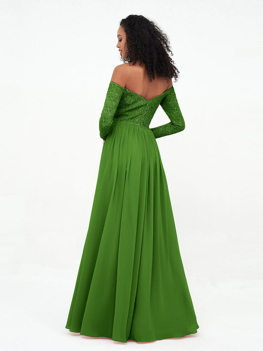 Babaroni JoannaVestidos largos de encaje con mangas largas y hombros descubiertos Musgo