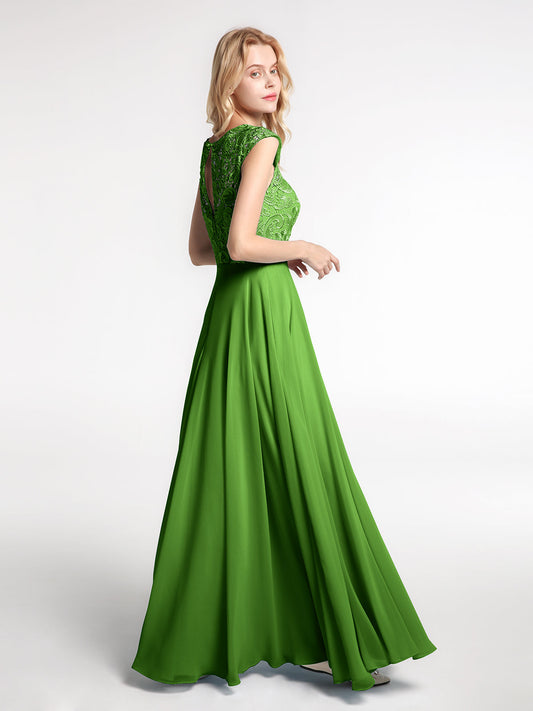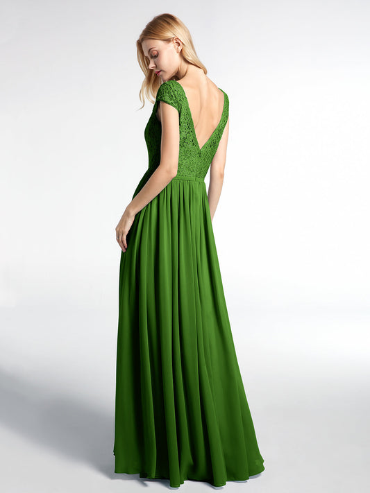 Babaroni SherryVestido maxi de encaje y chiffon con mangas cortas Musgo