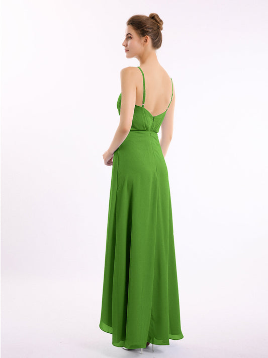 Babaroni HannahHannah Escote En V Saten Alto Bajo Vestidos De Dama De Honor Musgo