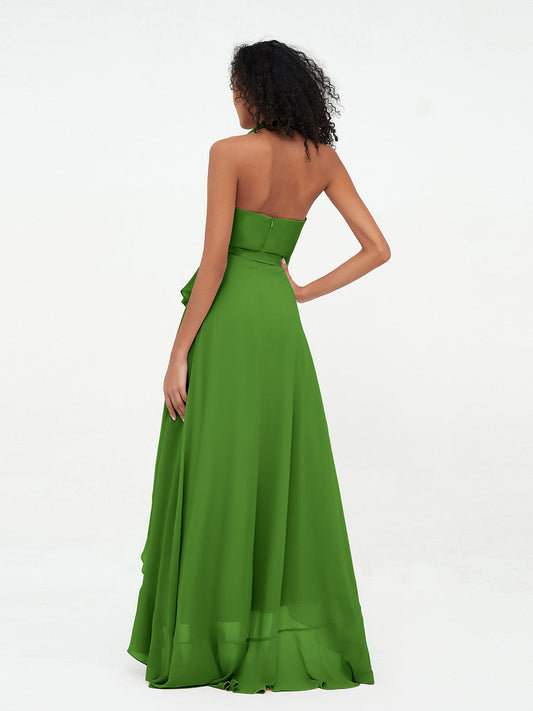 Babaroni VenusVestidos asimétricos de chiffon con cuello halter y escote en V profundo Musgo