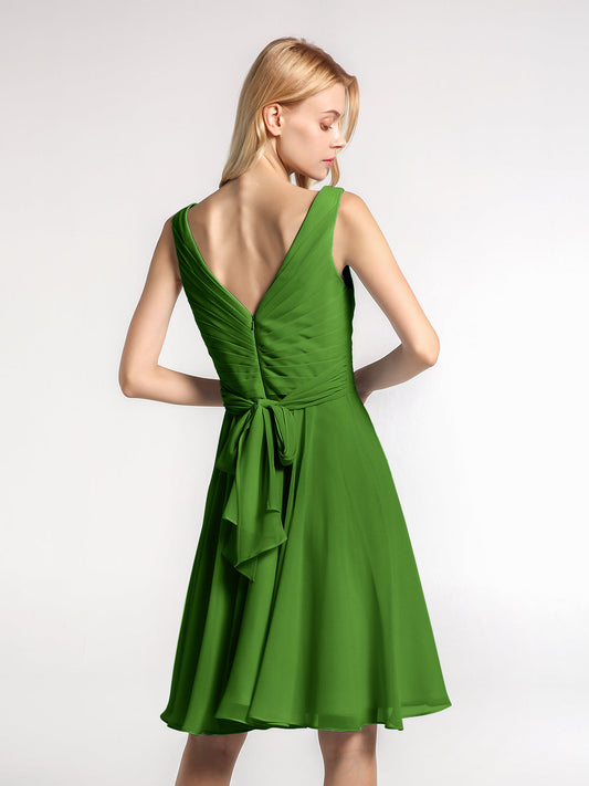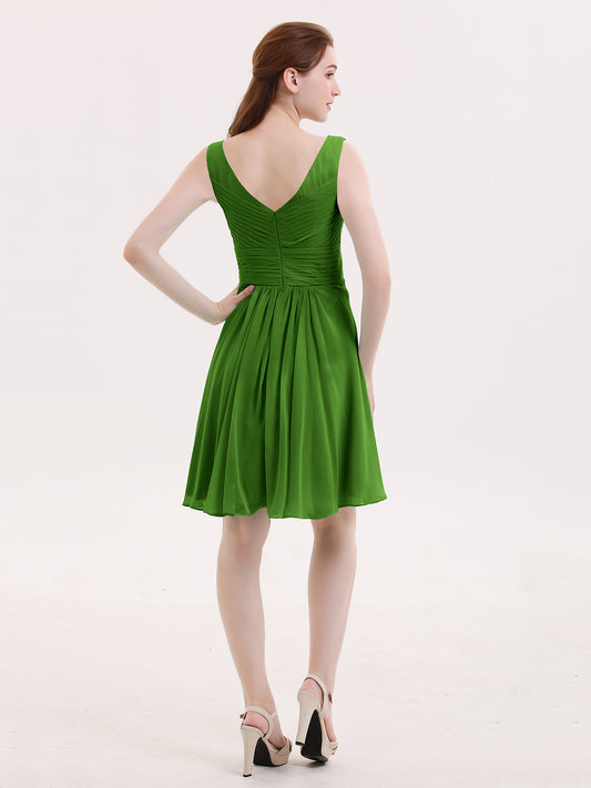 Babaroni ShirleyShirley Escote En V Gasa Corto Vestidos De Dama De Honor Musgo