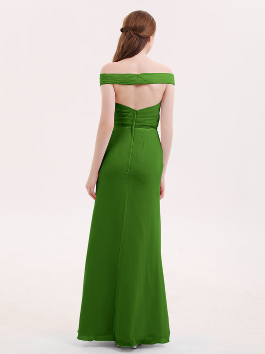 Babaroni SebastianeSebastiane Fuera Del Hombro Gasa Vestidos Con Apertura Musgo