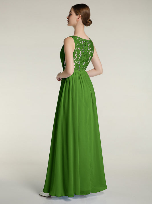 Babaroni MariaVestidos largos de chiffon de cuello en Y para damas de honor Musgo