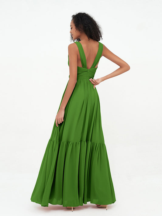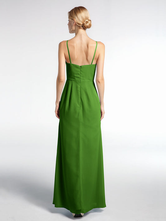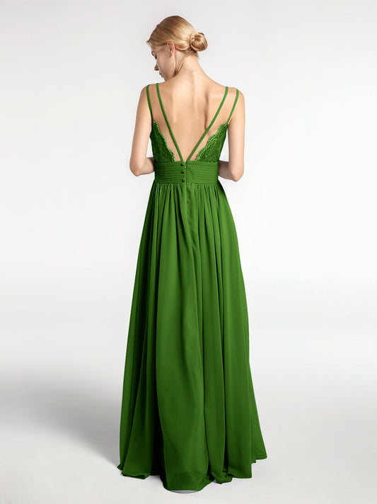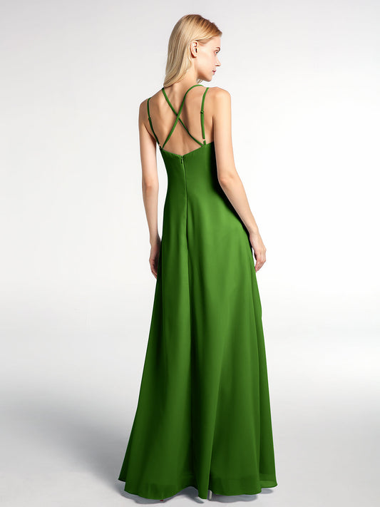 Babaroni CoraVestido largo de dama de honor de chiffon con tirantes dobles Musgo
