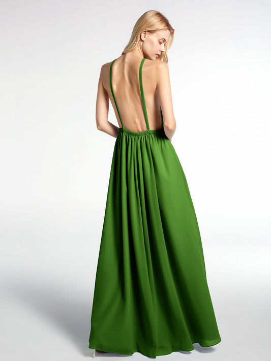 Babaroni ReneeVestido sexy maxi de chiffon con cuello halter y espalda baja Musgo