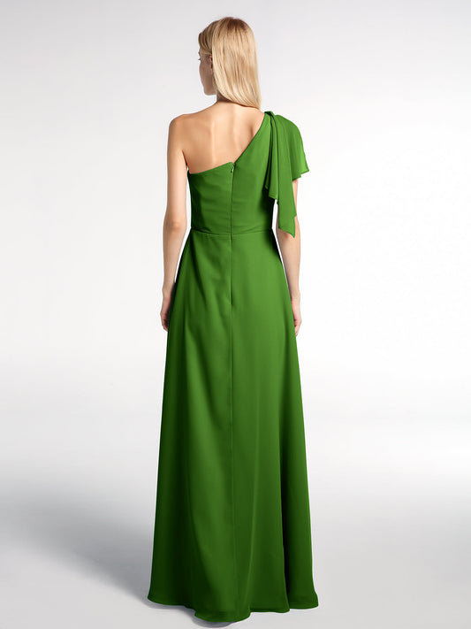Babaroni XantheVestidos máximos de chiffon de un solo hombro con abertura Musgo