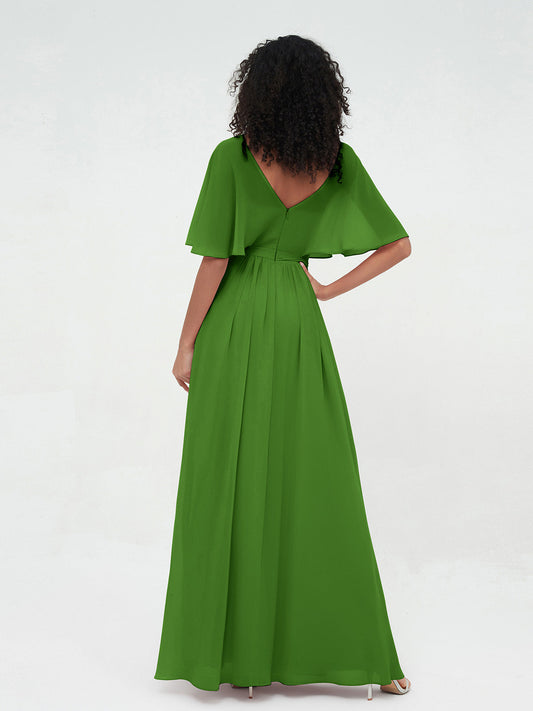 Babaroni UnaVestidos máximos de chiffon con escote en V profundo y mangas 1/2 Musgo