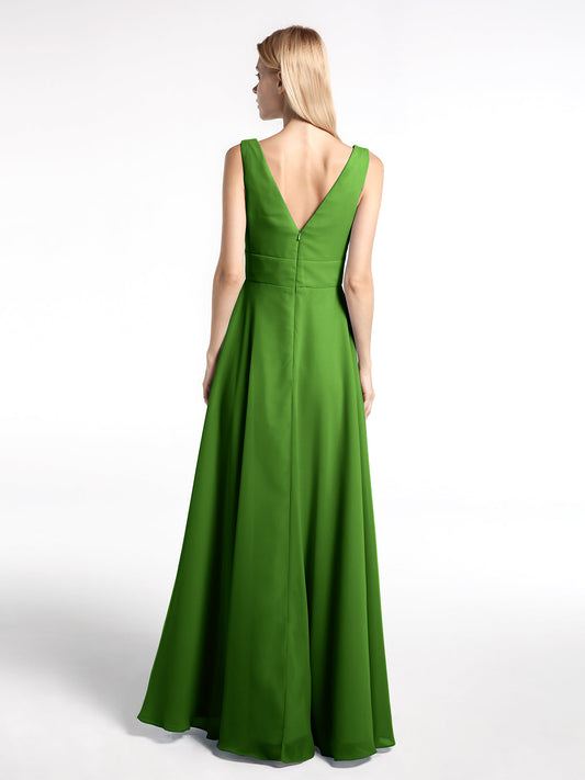 Babaroni SibylVestido largo de chiffon sencillo con escote en forma de muesca Musgo