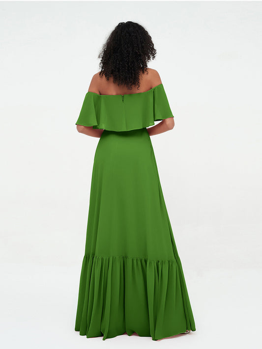 Babaroni VirginiaVestidos máximos de chiffon con falda escalonada estilo off shoulder Musgo