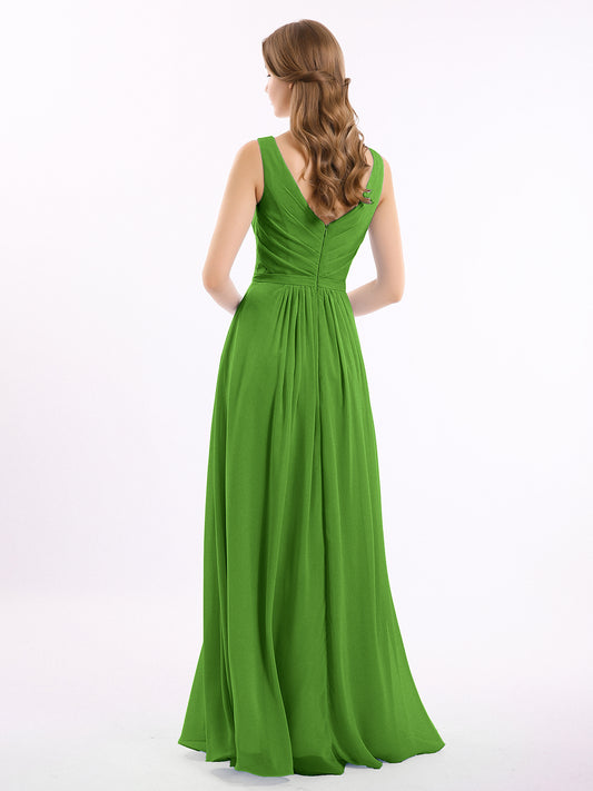 Babaroni GeorgiaGeorgia Escote En V Gasa Largo Vestido De Dama De Honor Musgo