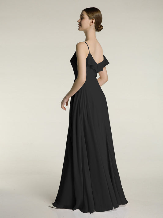 Babaroni JessicaVestidos de dama de honor de chiffon con tirantes finos Negro