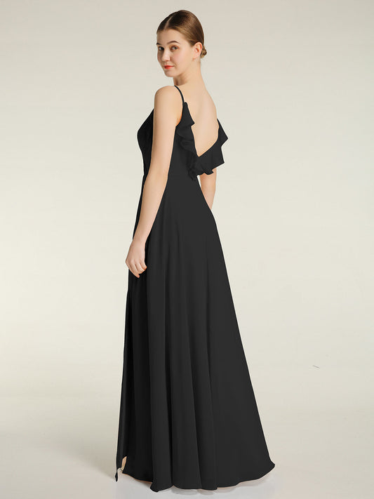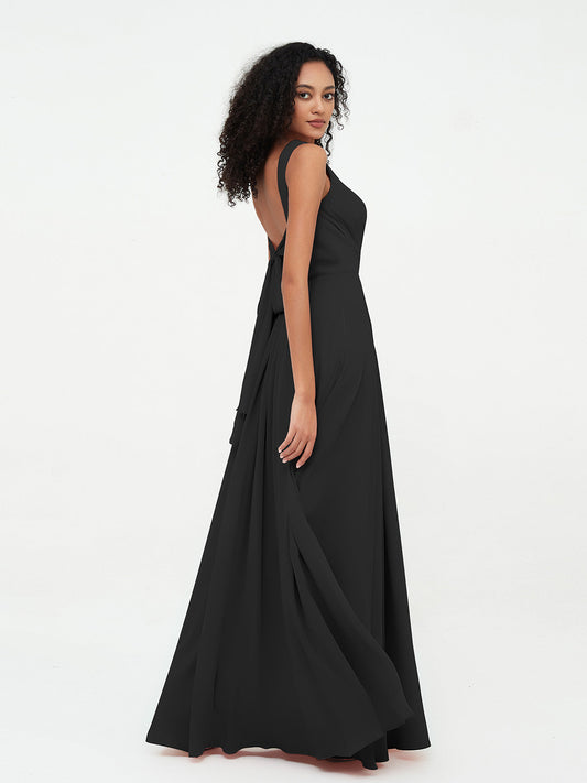 Babaroni VitaVestido de dama de honor de chiffon con escote en V y espalda descubierta Negro