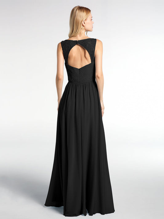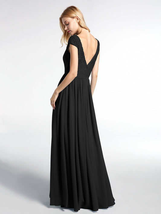 Babaroni LaraineVestido maxi con cuerpo de encaje y falda de chiffon con escote en V Negro