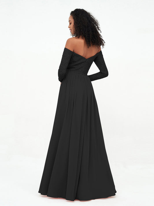Babaroni JoannaVestidos largos de encaje con mangas largas y hombros descubiertos Negro