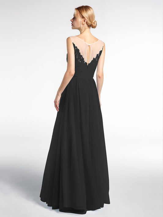 Babaroni PamelaVestido maxi de encaje y tul con escote ilusión Negro