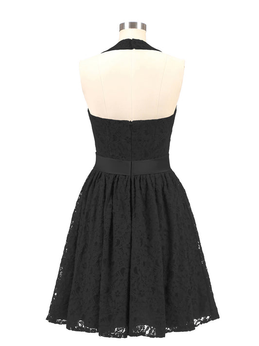Babaroni FrancesVestidos de halter con top de encaje y espalda descubierta de gasa Negro