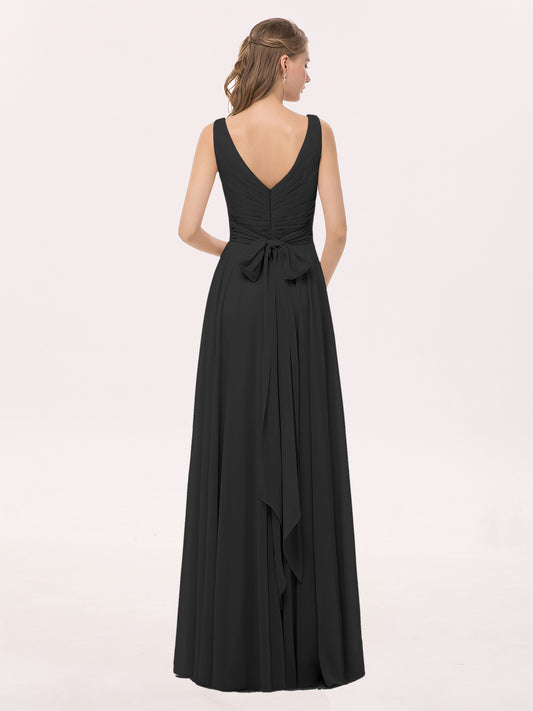 Celina Escote En V Gasa Vestido De Dama De Honor Hasta El Topillo Negro