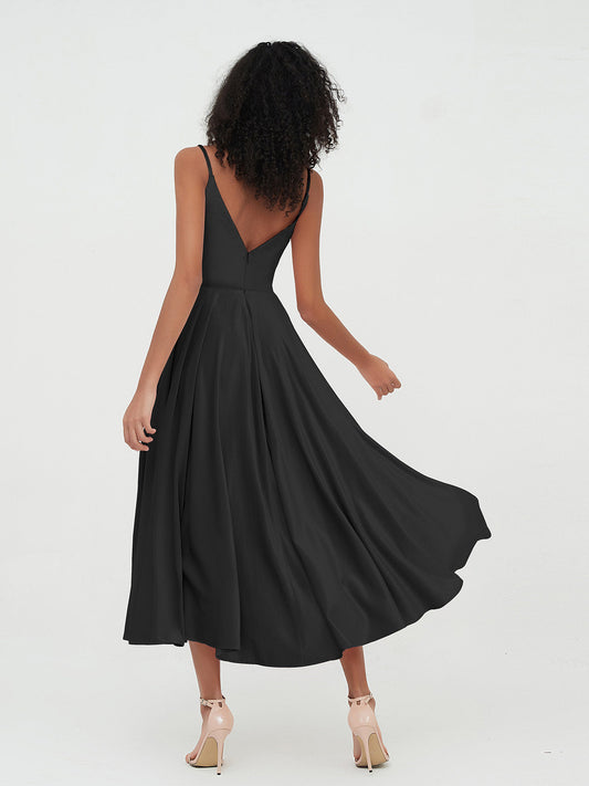 Babaroni EnidVestidos de terciopelo midi con tirantes y bolsillos Negro