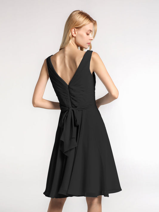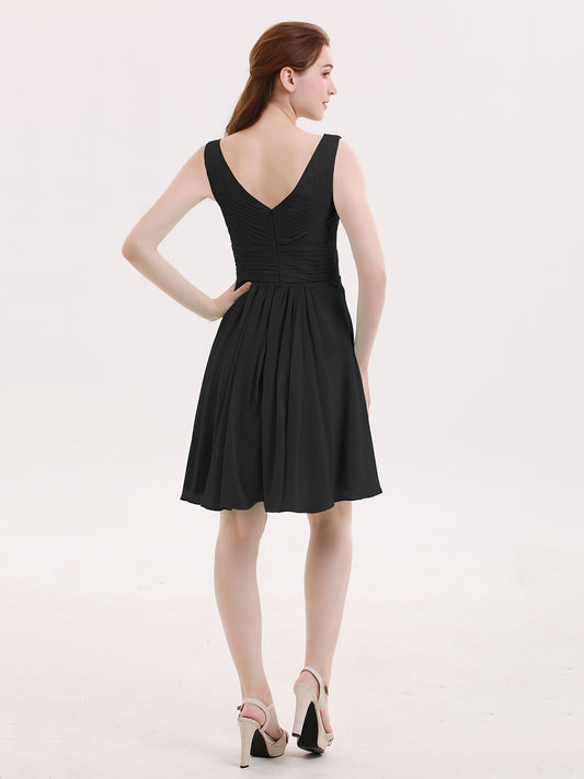Babaroni ShirleyShirley Escote En V Gasa Corto Vestidos De Dama De Honor Negro