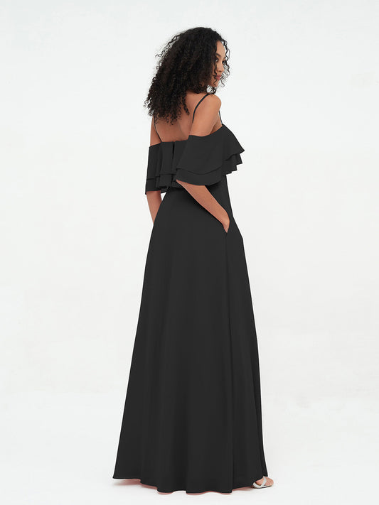 Babaroni MaudSencillos vestidos largos de chiffon con tirantes finos y abertura Negro