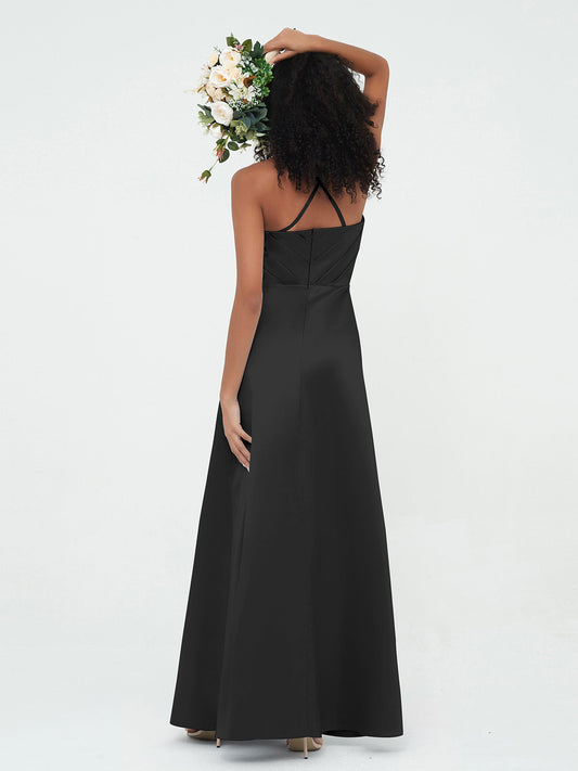 Babaroni MyrnaVestidos máximos de satén estilo A-line con tirantes spaghetti Negro
