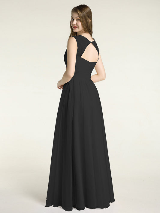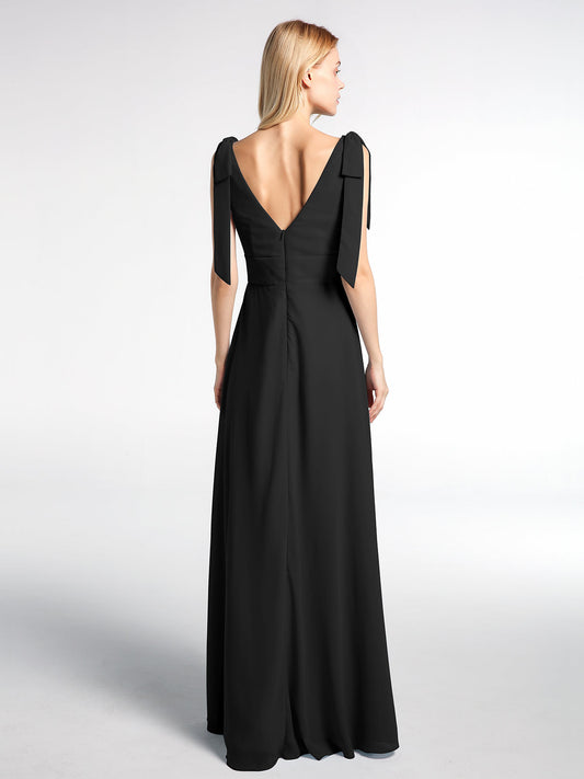 Babaroni VitaVestido de dama de honor de chiffon con escote en V y espalda descubierta Negro