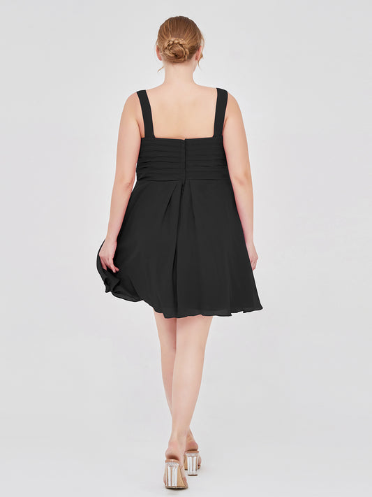 Babaroni PenelopePenelope Escote En V Gasa Corto Vestido De Dama De Honor Negro