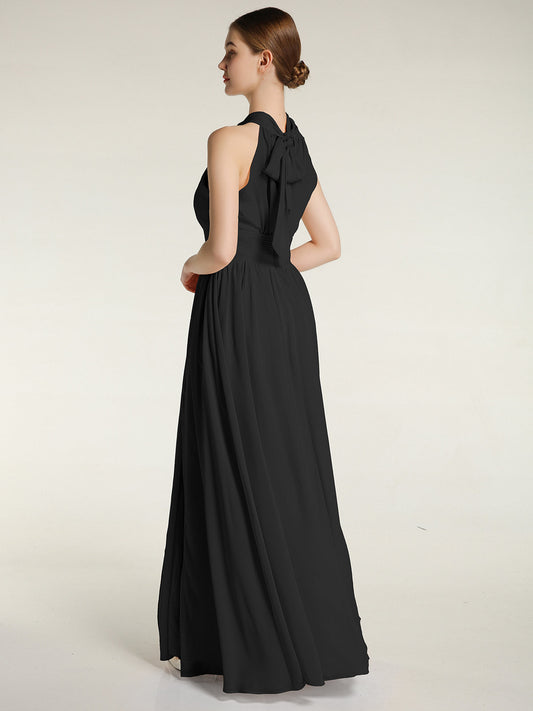 Babaroni ReneeVestido sexy maxi de chiffon con cuello halter y espalda baja Negro